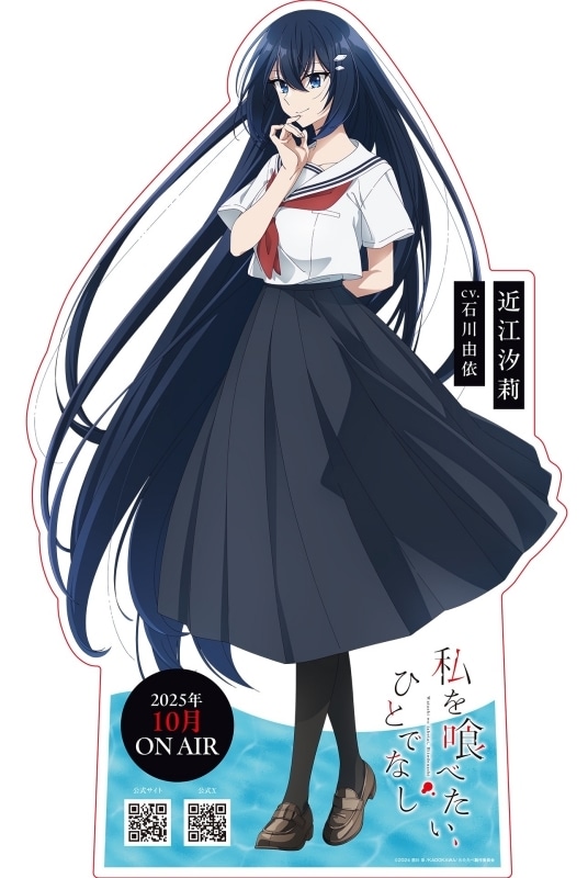 『私を喰べたい、ひとでなし』作中にも多数登場する愛媛県の名所。そんな愛媛県の各種施設4箇所にて比名子・汐莉・美胡の等身大パネルが設置されることが明らかになりました!設置は6月1日(日)より順次開始され、今回解禁した『私服ビジュアル』も登場。キャラクターとの記念撮影やSNSへの投稿も大歓迎!愛媛県にお越しの際はぜひ足を運んでいただき、本作の世界観をお楽しみください。
