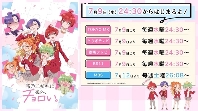 『帝乃三姉妹は案外、チョロい。』7月9日より放送! メインキャラクターの新ビジュアル公開|先行上映会が開催決定