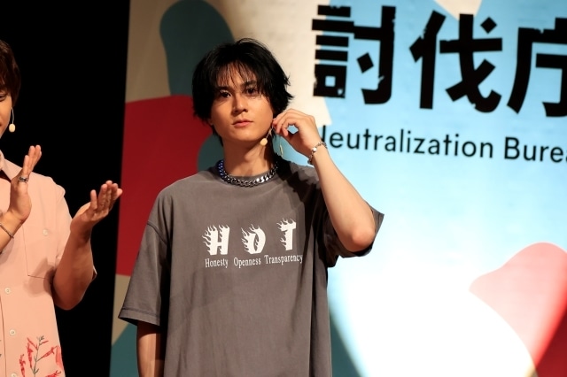 感想を尋ねられた保科宗四郎役 河西健吾は「お客さんの前なので高揚感もあり、この場限りの生感みたいなものを感じることができて、とても面白かったです」とコメントしました。続いて『第7話:怪獣9号』のレノと伊春の緊張感のある共闘シーン。
