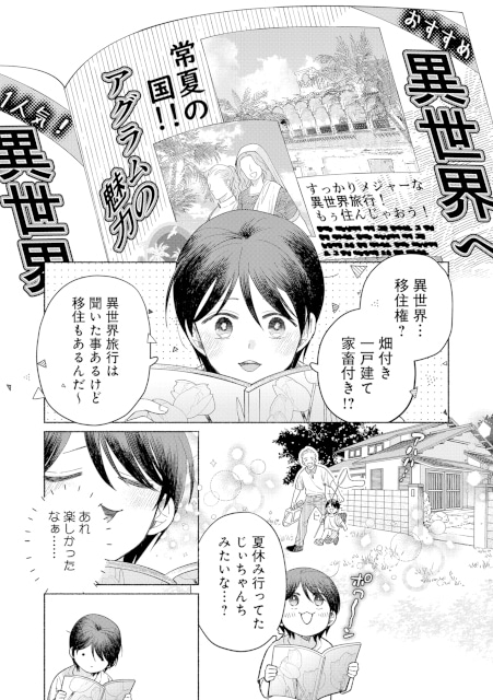 忍は福引で当たったチケットで異世界に移住。異世界は高身長の人ばかりで、子供に見られることが多いけど、持ち前の明るさと料理の腕で、動物や周囲の人に愛され異世界生活満喫♪