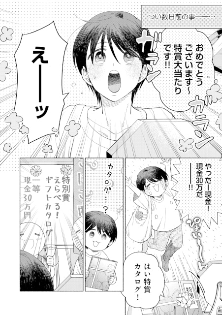 【異世界スローライフBL♪】『福引で当たったので異世界に移住し、恋をしました』(著:日野晶先生/原作:花柄先生)が本日より連載スタート!【試し読みあり】