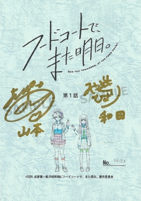 TVアニメ「フードコートで、また明日。」Blu-ray BOXを下記の対象店舗にてご予約・ご購入いただいた方の中から抽選で、キャストの直筆サイン入り台本をプレゼント!