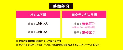 放送で規制されていた部分の規制解除に加えて、全話数において放送できなかったパートが追加された「完全デレギュラ版」の制作が決定しました。