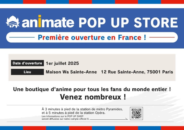フランスに初めてアニメイトが出店! 「アニメイトパリ ポップアップストア」2025年7月1日にグランドオープン!!