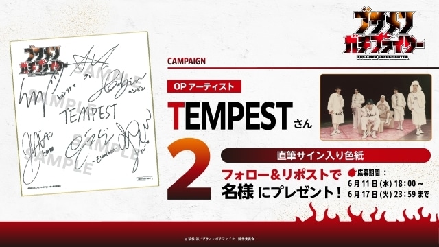 公式XにてOPアーティストTEMPESTさんの寄せ書きサイン入り色紙プレゼントキャンペーンを開始しました!キャンペーン詳細は公式Xをご確認の上、ぜひご参加ください!