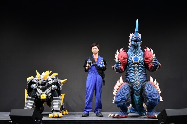 作中のコウセイの掛け声である「行け!レキネス!」、続けざまに「頼んだぞ!トライガロン!」と吉田が発して、2体のメテオjカイジュウを召喚! 初登場となる迫力満点の頼もしいパートナー怪獣たちの姿に会場もくぎ付けとなった。