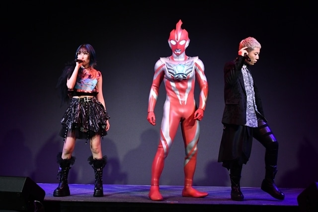 これにはキャスト、監督陣も「すげー!!」と大興奮の様子を見せる中、ステージ上にはMindaRynとASH、そしてウルトラマンオメガの3人が立ち並び立ち、アップテンポなビートが迫力満点の楽曲がスタート。