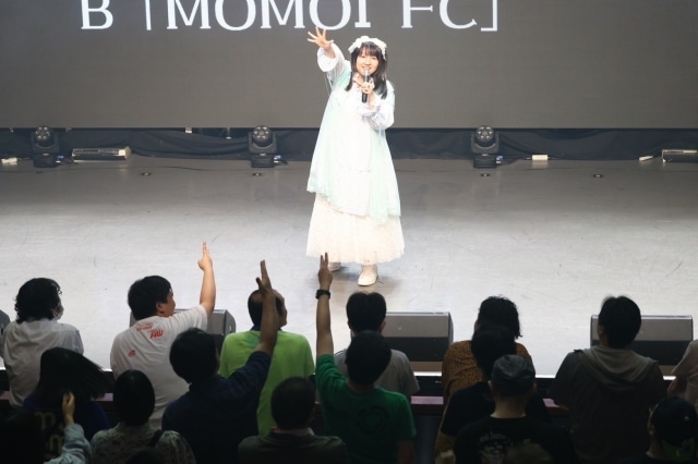 期待に胸高まる中、イベントコーナーへ。「新ファンクラブの名前を決めよう!」「次回FCイベントはゲストを呼ぶ?呼ばない?」「ジャケ写はスカートorパンツ?」などの設問を、ファンの声量dBを測定し決めていくというモモーイとモモイストらしさ全開のコーナー。最後は「モモーイの登場SEを録ろう!」とファンがSEの録音に参加し、割れんばかりのコールが会場に響き渡った。