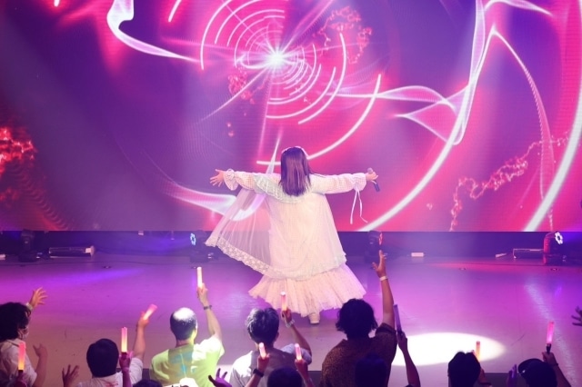 後半のライブコーナーでは、「2001年のゲーム・キッス」など、普段アニソンイベント等ではなかなか聴ける機会がレアな珠玉の楽曲も披露。ラストはやはり鉄板の「LOVE.EXE」。熱気も最高潮にフロアがオレンジのサイリウム一色に染まった。