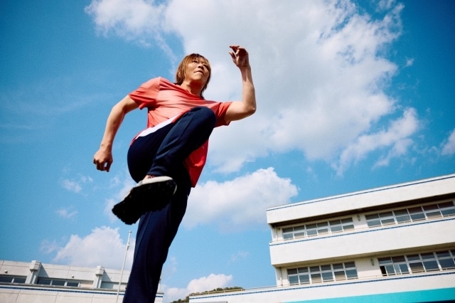 撮影コンセプトは、谷山の50年の歩みを表す「過去・現在・未来」。学校では元陸上部だったという谷山が久しぶりにグラウンドで躍動。