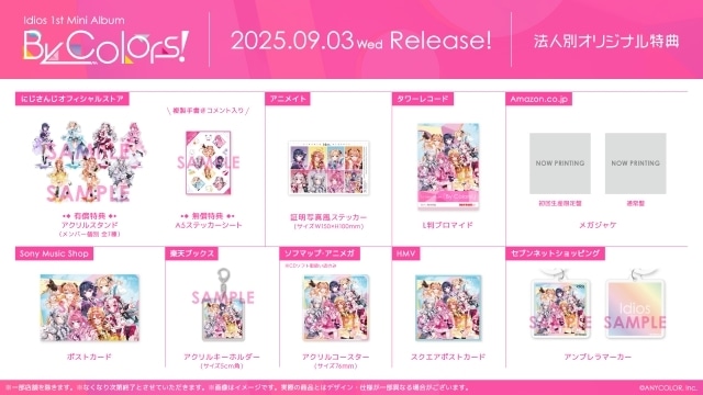 にじさんじ「Idios」初のミニアルバム「By Colors!」法人別オリジナル特典公開! アニメイト特典は証明写真風ステッカー|発売記念トークイベント開催決定