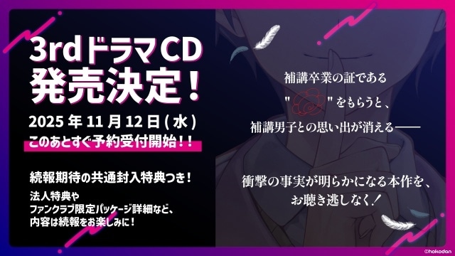 『補講男子』3rdドラマCDが11月12日発売決定! アニメイト特典は「Memory 3 缶バッジコレクション(全5種)」|キャラクターソング5カ月連続リリース決定