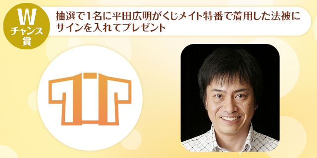 くじをご購入いただいた方の中から抽選で1名様に、くじメイト特番で使用した法被(サイン入り)1点をプレゼントいたします。