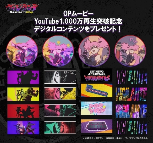 オープニング映像は、非合法ヒーロー≪ヴィジランテ≫たちが街の裏側で暗躍する姿を描いたダークでありながらもポップな中毒性のある映像となっており、本日6月25日についにYouTubeにて1,000万再生を突破しました。