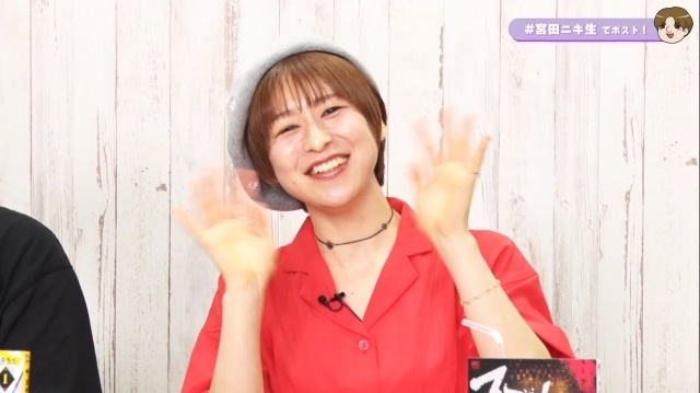 大空とは、地上波番組での共演エピソードを紹介。大勢の先輩声優が出演し緊張していた大空だったが、宮田が大空の出演作「宇崎ちゃんは遊びたい!」のTシャツを着ていたことで、緊張がほぐれたそう。「宮田さんに救われたんですよ」と大空。続けて小西も「宮田くんみたいなスーパースターが、アニメとか漫画とか大好きですって声高らかに言ってくれるから、僕らも今の地位がある」と語ると、宮田は照れた様子を見せました。