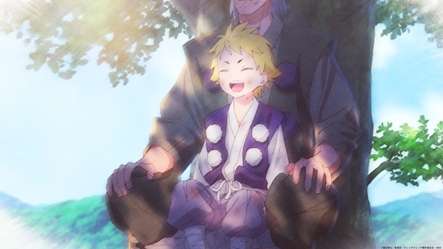 空を飛ぶ練習をするニコ、父に鬼艮闘術を習うモリヒト、満面の笑みを浮かべる天狗の正装姿のカンシ、フィギュアスケートのスケート靴を履くケイゴ、黒猫を見つめるネム、父らしき人物に抱きかかえられるミハルなど、それぞれの幼き頃の様子が描かれています。