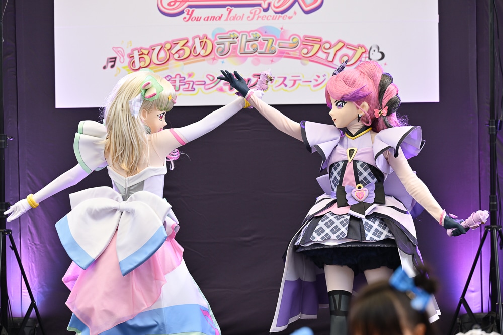 『キミとアイドルプリキュア ♪』「おひろめデビューライブ ズキューンキッスステージ!!」レポート|キュアズキューンとキュアキッスが子供たちと触れ合ったほか、5人揃って新曲「キミとルララ」の披露も
