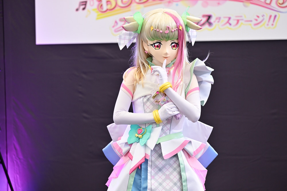 歌い終わりで妖精のプリルンとメロロンも登場。ふたりもプリキュアたちのステージを楽しんだ様子でしたが、子供たちの前で喋りだすというハプニングが発生。そんなプリルンとメロロンのことを内緒にして欲しいとプリキュアたちがお願いすると、子供たちは元気よく手を挙げて約束を交わしていました。