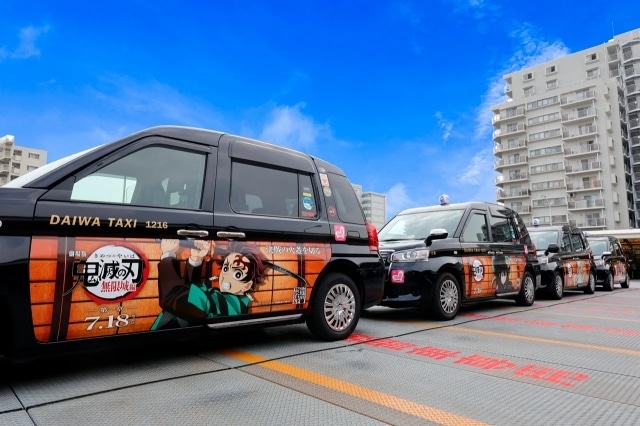 企画 1 竈門炭治郎や柱などのメインキャラクター計 8 種のラッピングタクシーが走行