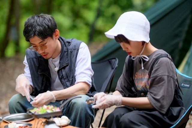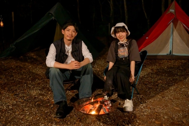 番組では、アウトドア経験のある樹乃倉厳役の濱野大輝さんと、キャンプ初心者の草野雫役の新崎瑞季さんが、「ふたりソロキャンプ」に挑戦!テントの設営からキャンプ飯の調理、焚き火などを実践していきました。ただ、2人だけでは心もとないということで、イラストレーターであり、キャンプコーディネーターのこいしゆうかさんが、ふたりをサポート、キャンプのいろはを教えます。