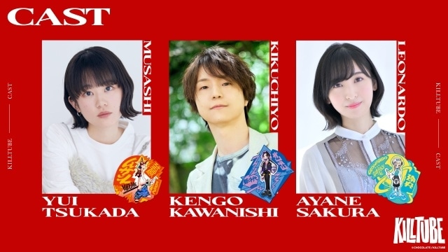 何にも縛られず、赴くままに生きる主人公・武蔵役を務めるのは、本作が初主演となる声優・塚田悠衣さん。生粋の詐欺師である菊千代役には河西健吾さん、心を失った発明家、玲央役には佐倉綾音さんが決定し、キャラクターとのコラボレーション画像を初公開しました。