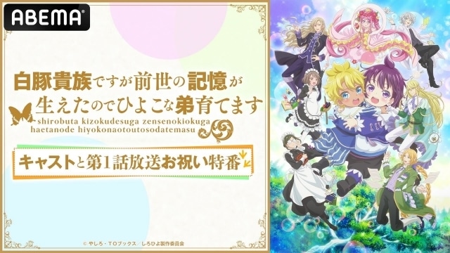 また『白豚貴族ですが前世の記憶が生えたのでひよこな弟育てます』は、「ABEMAプレミアム」「広告つきABEMAプレミアム」(※1)にて全話独占配信中のほか、7月6日(日)から毎週日曜日夜10時より「ABEMAアニメチャンネル」にて地上波同時・無料再放送も実施。