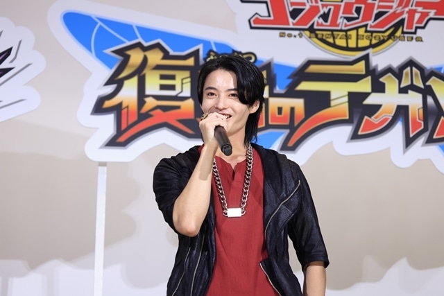 続いては、スーパー戦隊50周年の記念作品として、その期待を一身に背負いながらついに大スクリーンへ登場する「ナンバーワン戦隊ゴジュウジャー」。先日、松坂桃李、千葉雄大、竜星涼、横浜流星ら、歴代作品を支え続きてきた錚々たる面々からの応援メッセージが凄まじい反響を呼び、日々注目も高まる中、冬野は、「テガソードが死んでしまうなど、ゴジュウジャーらしく、どこかぶっ飛んだ部分もやっぱり多かったですが(笑)、撮影はとても楽しかったです。映画公開までが不安とワクワクが入り混じっていますが、でも公開が待ち遠しいです!」と力強く語った。