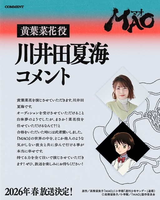 原作・高橋留美子先生から『MAO』のアニメ化をお祝いする直筆コメントが到着!