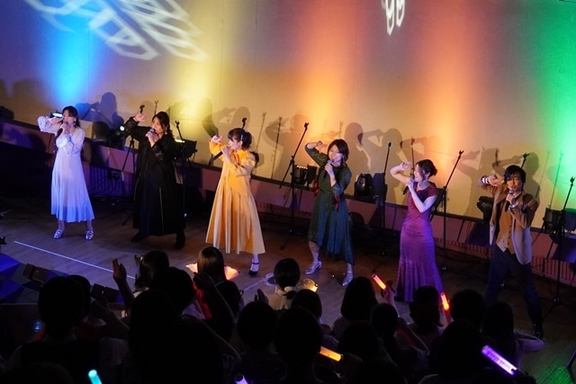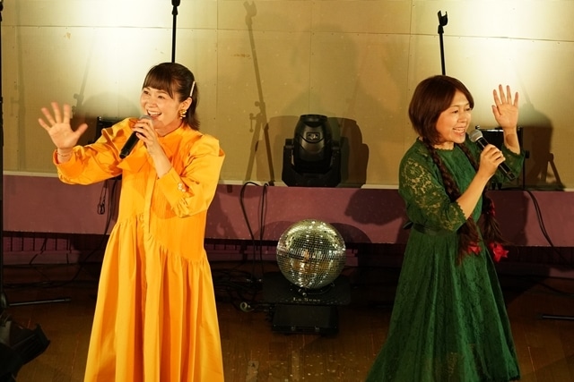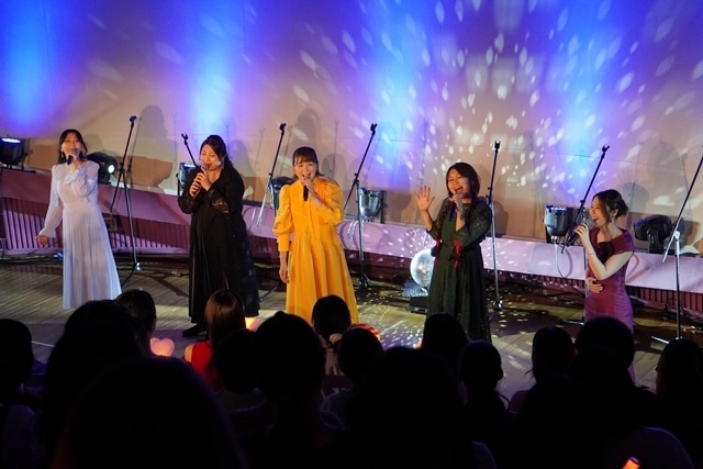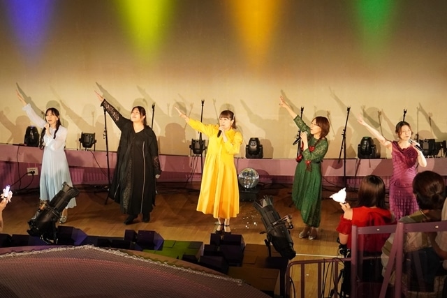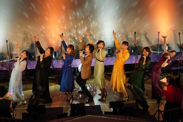 ▲8曲目は小林沙苗さんと齋藤彩夏さんで、OVA『サクラ大戦 ニューヨーク・紐育』より「夜明け」を明るくデュエット。客席の間をハイタッチしながら回るサービスも!小林さんから「紐育の懐かしいナンバーを聴いていただきました」とMCが入り、全員を呼び込んでトークコーナーに移ります。