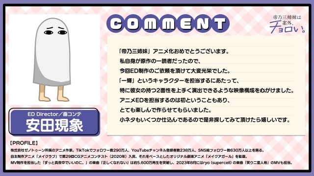 『帝乃三姉妹は案外、チョロい。』ノンクレジットOP&ED映像(一輝ver.)が公開! 映像制作を担当した安田現象さんのコメント到着