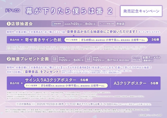 ざらめ鮫先生原作の大人気作ドラマCD「幕が下りたら僕らは番 2」が本日発売!