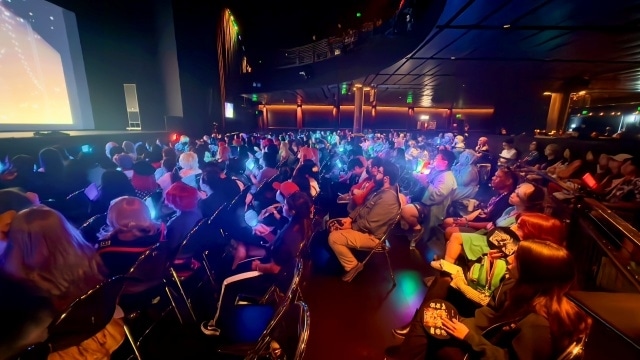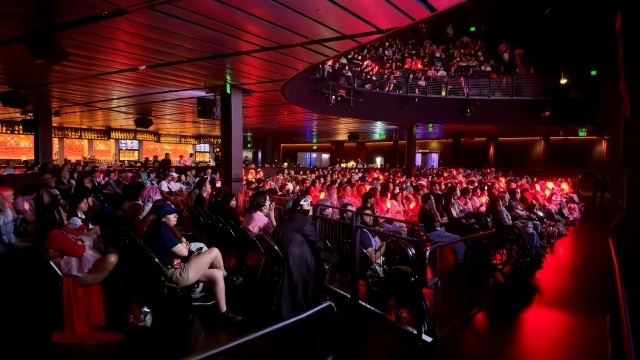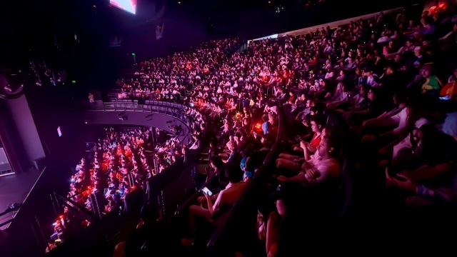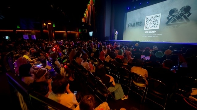 そろそろ上映開始の時間か。と、ふと後方を見ると、いつの間にか席はぎっしりと埋め尽くされ、さらにその席の後方には立ち見が出るほどの超満員となっていた。一階席ももちろん超満員。その光景を目にし急激に期待感が高まる中、MCが会場を盛り上げていく。そしてついに上映開始となった。