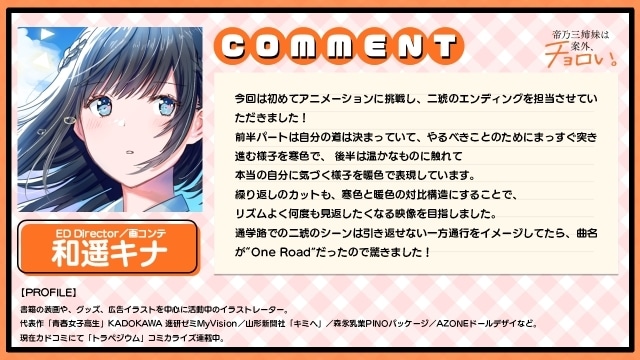 アニメ『帝乃三姉妹は案外、チョロい。』ノンクレジットED映像(二琥ver.)が公開! 映像制作を担当した和遥キナさんからコメントが到着