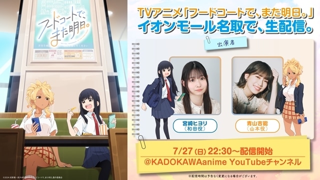 TVアニメ「フードコートで、また明日。」イオンモール名取で、生配信。