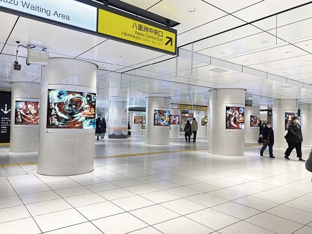 『鬼滅の刃 ヒノカミ血風譚2』JR新宿駅・東西自由通路で、45.6m大型LEDビジョンと柱25面を連動させた特別映像を1週間限定で放映!