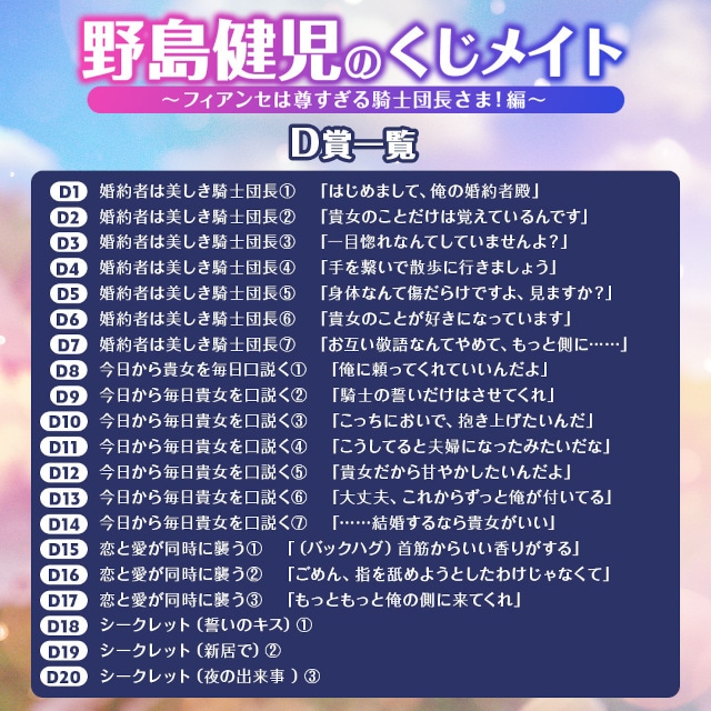 野島健児のくじメイト~フィアンセは尊すぎる騎士団長さま!編~ 景品一覧