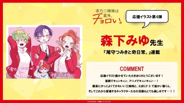 『帝乃三姉妹は案外、チョロい。』応援イラスト第4弾となる『尾守つみきと奇日常。』森下みゆ先生のイラストが到着! 第4話先行場面カット・あらすじも公開