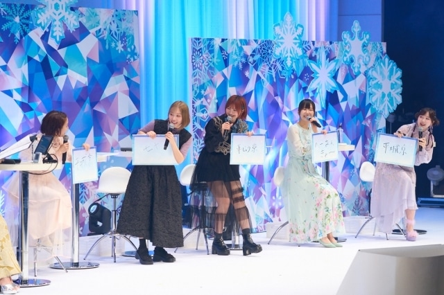 このコーナー終わりで「生朗読コーナー」が実施。こちらは今回のイベントビジュアルに描かれたキャラクターたちの衣装から着想を得た物語となっており、いのりたちが自分たちでエキシビジョンを作り上げるといった内容。