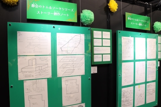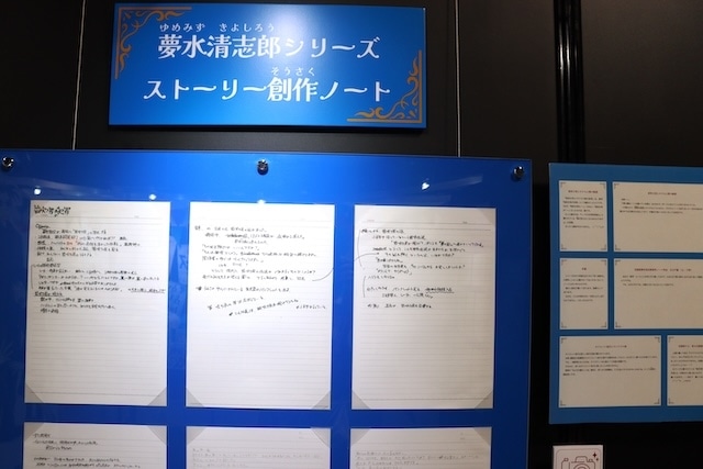 本イベントは、はやみね先生の作家生活36周年で初となる展示会。『名探偵夢水清志郎事件ノート』『怪盗クイーン』『都会のトム&ソーヤ』の3シリーズがフィーチャーされ、これまで作品を彩ってきた美麗な表紙イラストや挿絵、未発表原稿や貴重な資料が迫力のスタイルで展示されています。