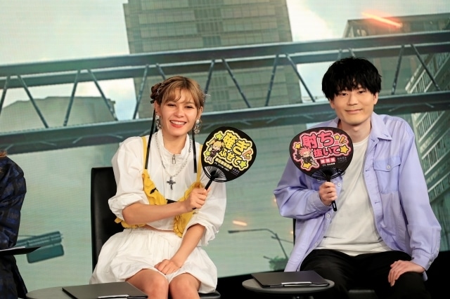 気になるキャラクターについて、加藤は「第2期が始まって一視聴者として見ているんですが、東雲りんが原作よりも印象が強まった感覚があり気になってます」と語り、内山はやはり長谷川が気になるようで、大型の武器に乗って戦う戦闘姿の長谷川に触れ「長谷川をあの姿で戦わせられるっていうのが衝撃的ですね」と驚いた様子でコメントを残しました。