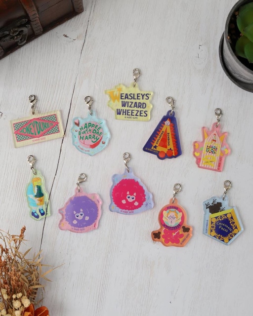 会場では、ハリー・ポッターやセブルス・スネイプなどの人気キャラクターがイラスト化されたアルティメタルバッジや、バーティー・ボッツの百味ビーンズ、ピグミーパフといった作品を象徴するアイコンがモチーフのアクリルチャームコレクションなど、多数商品を取り扱いいたします。