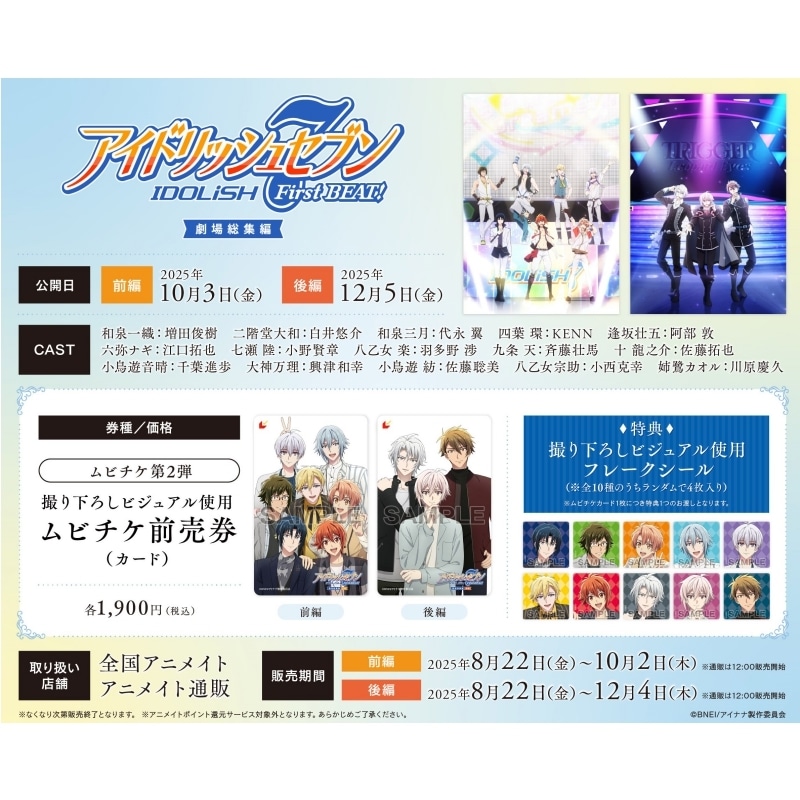 『アイドリッシュセブン First BEAT! 劇場総集編』ムビチケ第2弾:【前編】【後編】撮り下ろしビジュアル使用ムビチケ前売券(カード)が全国アニメイト・アニメイト通販でも発売中!特典は「撮り下ろしビジュアル使用フレークシール」☆