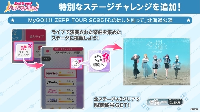 今回のライブで演奏した楽曲を集めた特別ステージを、スマートフォン向けゲーム「バンドリ! ガールズバンドパーティ!」内、ステージチャレンジ機能に追加いたしました。
