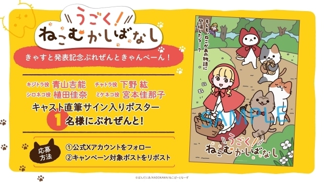 WEBアニメ『うごく!ねこむかしばなし』YouTubeにて10月15日より配信決定! 声優に青山吉能さん、下野紘さん、植田佳奈さん、宮本佳那子さん