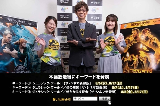 最後に、山寺が「今年は久しぶりに恐竜ブームが来ているのかなという気もしますし、ザ・シネマでこの新録版を見る人がどんどん増えたらいいなと思います。『ジュラシック』シリーズの『ワールド』3部作を通して、新録版をぜひ楽しんで欲しい」と力強い言葉で締めくくり、キャスト陣も口々に「わたしたち、頑張りました!」と笑顔で語った。