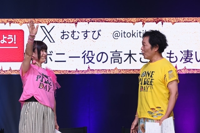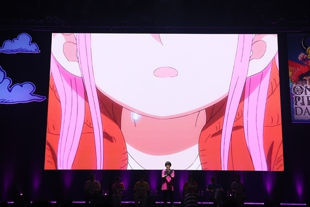キャスト陣による生アフレコのコーナーでは、ルフィが〝夢の果て〟を語るシーンや、くまとボニーの回想シーンなど「エッグヘッド編」の名シーンが披露され、思わず涙ぐむファンの方も。TVアニメ時の思い出を聞かれた高木さんは、台本をもらった段階から>泣いていたそう。