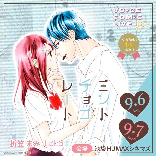 2025年9月6日(土)、7日(日)に池袋HUMAXシネマズにて「ミントチョコレート」(白泉社・LaLa)を上演します。まるでアフレコ現場にいるような臨場感を味わいつつ、原作をリッチコンテンツとして楽しめる新しいライブエンターテインメントです。