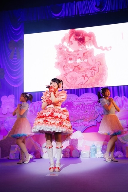 「おかげさまで、なんと30歳に!」という小倉に、「おめでとう」の言葉と拍手で沸き上がる会場。“魔法少女”がテーマのイベントということで、「歳を重ねても可愛く自分らしくありたい」という思いを告げる。そして、ステージにはバースデーケーキが運び込まれ、「ハッピーバ-スデー」の歌とともに、会場全体からあらためて祝福の声が上がる。