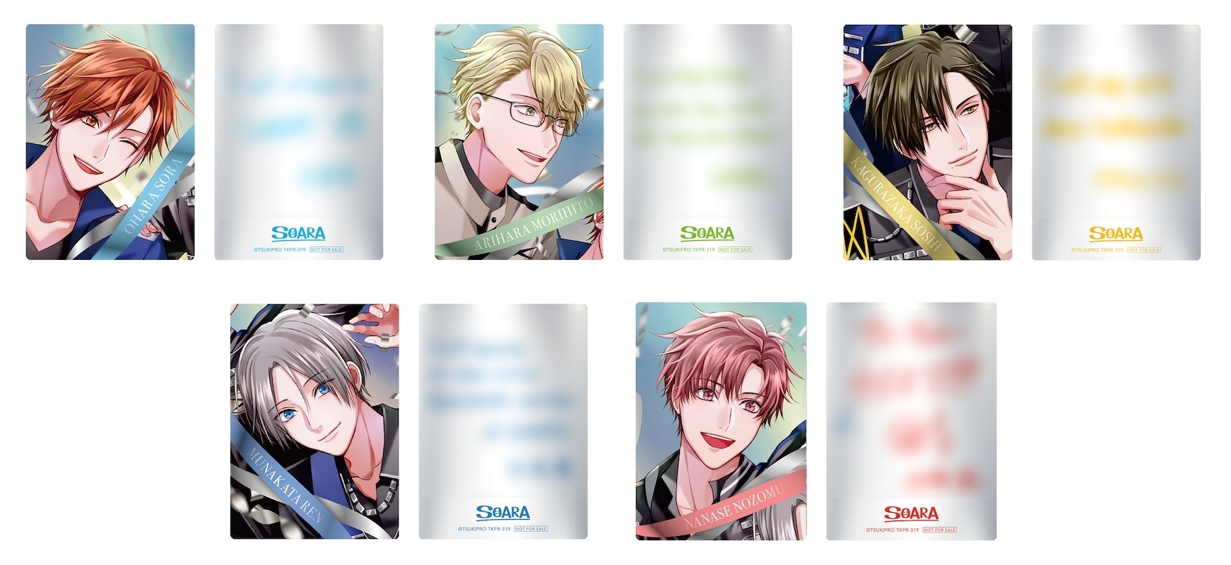 2.5次元に存在する芸能事務所「ツキノ芸能プロダクション(ツキプロ)」所属ユニット・SOARA(大原 空 CV:豊永利行さん/在原守人 CV:小野友樹さん/神楽坂宗司 CV:古川 慎さん/宗像 廉 CV:村田太志さん/七瀬 望 CV:沢城千春さん)。