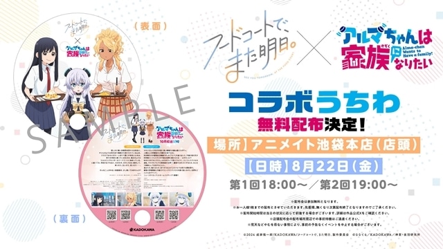 7月より放送中のTVアニメ『フードコートで、また明日。』と、10月より放送予定のTVアニメ『アルマちゃんは家族になりたい』。原作が共に「コミックNewtype」で連載中の作品同士によるコラボが決定!